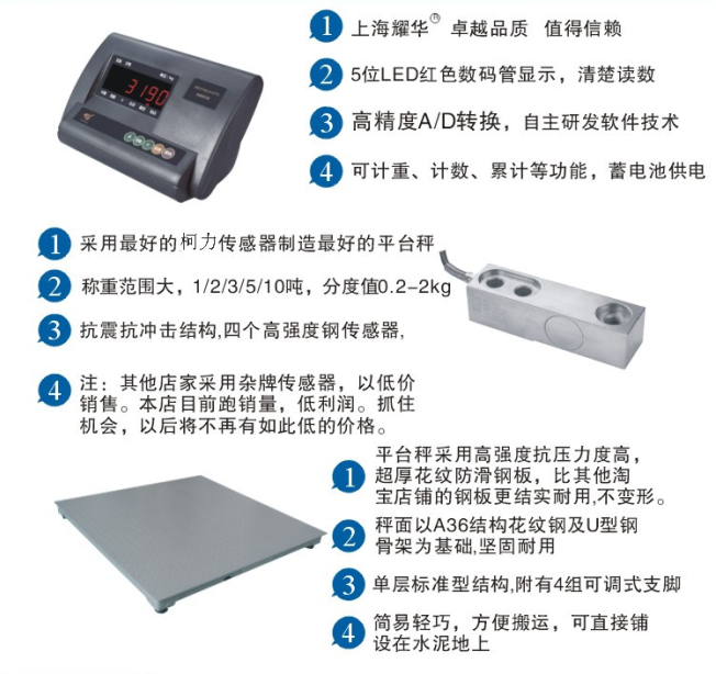 電子式地上衡由稱重傳感器、承重臺和稱重顯示器組成??梢苑胖迷趫?jiān)實(shí)地面上進(jìn)行稱量,也可安放在淺基坑上或在其兩側(cè)加裝帶有一定坡度的引道,供手推車稱重使用.
